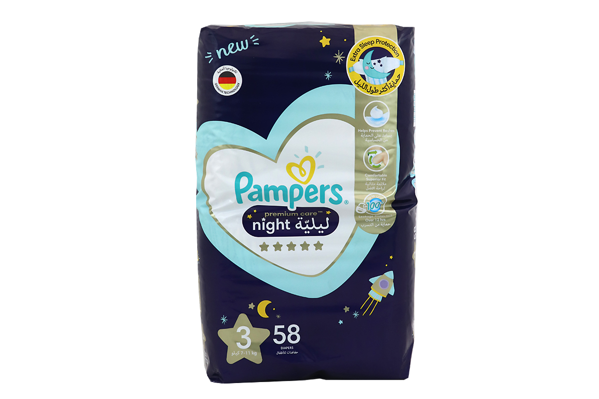 حفاضات بامبرز عناية مميزة ليلية 3 (7-11كجم) 58 حبة