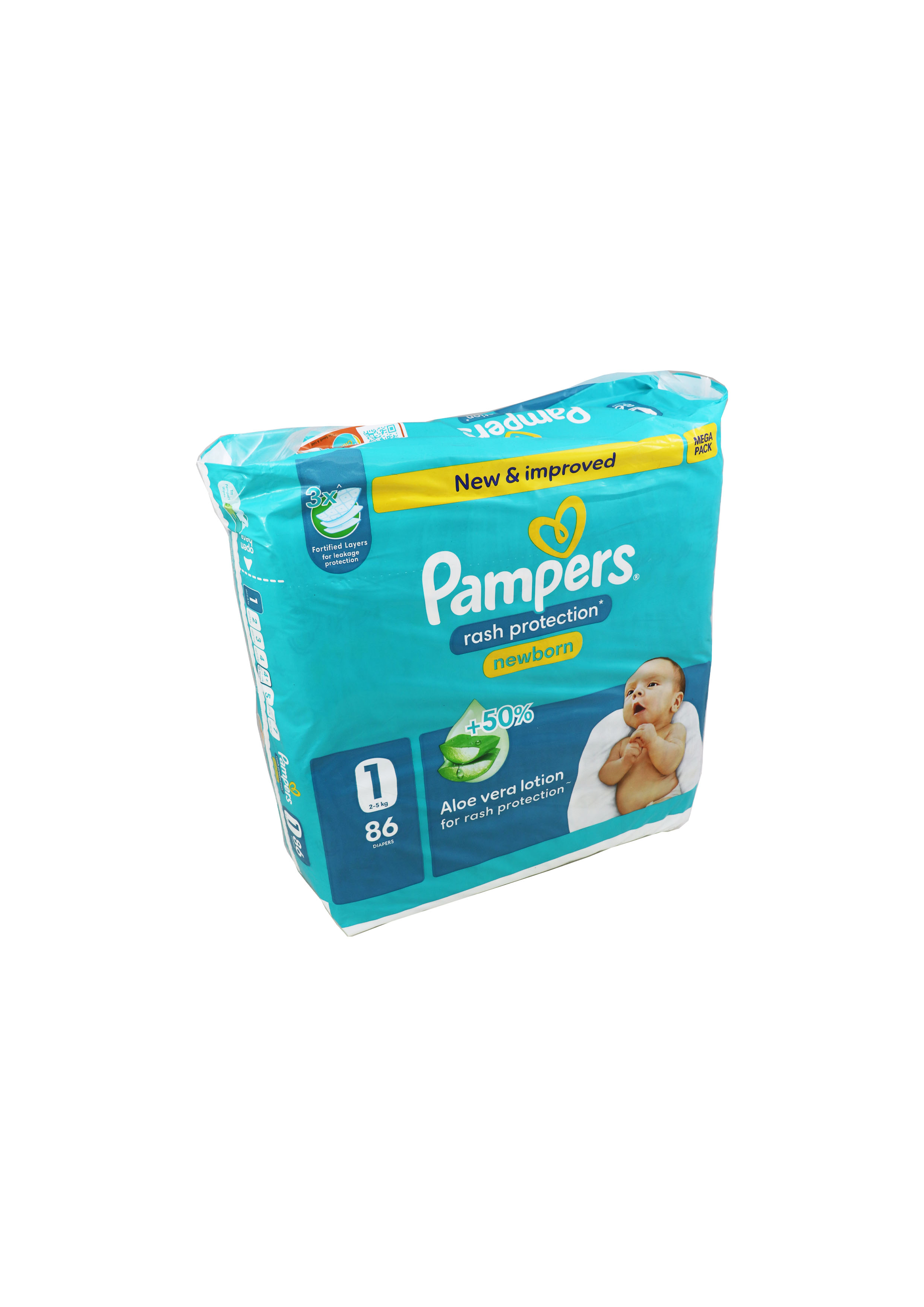 حفاضات بامبرز ميجا إس 1 (2-5 كجم) للحماية من الطفح الجلدي للأطفال حديثي الولادة - 86 قطعة